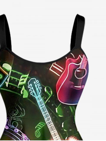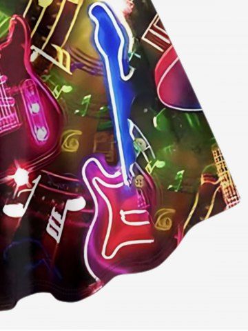 Plus Size Guitar Music Symbol Rock and Roll Print Hawaii A Line Dress - Black - 5x