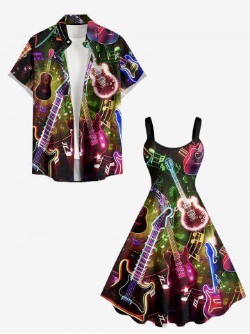 Graphic Dresses > Plus Size Guitar Music Symbol Rock and Roll Print Hawaii A Line Dress