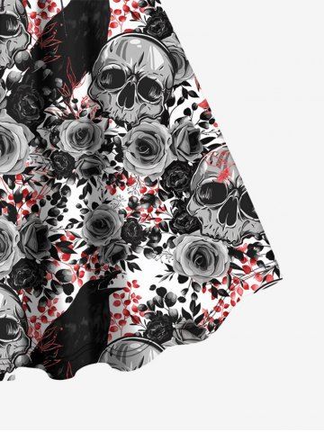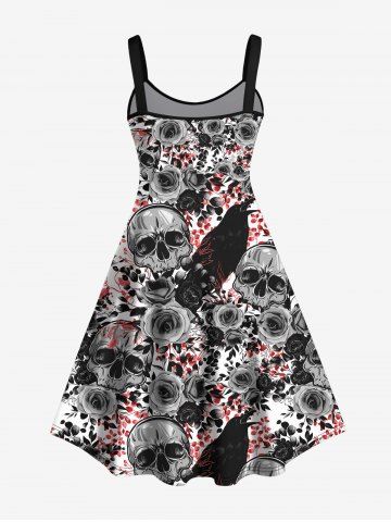 Graphic Dresses > Plus Size Halloween Costume Rose Skull Bird Grommets Lace Up 3D Print Tank Dress