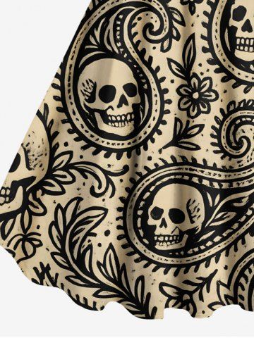 Plus Size Halloween Paisley Flower Skulls Print Tank Dress - Tan - Xs