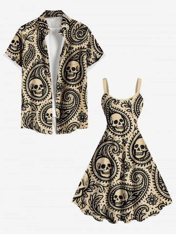 Plus Size Halloween Paisley Flower Skulls Print Tank Dress - Tan - 1x