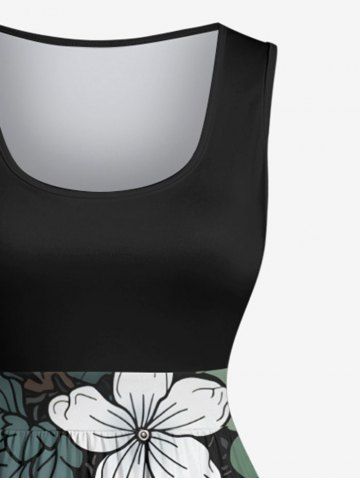Plus Size Halloween Skull Flowers Leaf Print 1950s Vintage Dress - Black - 2x