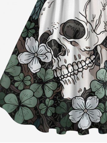 Graphic Dresses > Plus Size Halloween Skull Flowers Leaf Print 1950s Vintage Dress