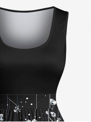 Plus Size Halloween Skull Flowers Print 1950s Vintage Dress - Black - S