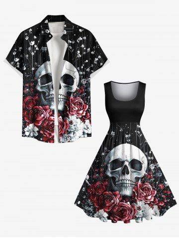 Graphic Dresses > Plus Size Halloween Skull Flowers Print 1950s Vintage Dress