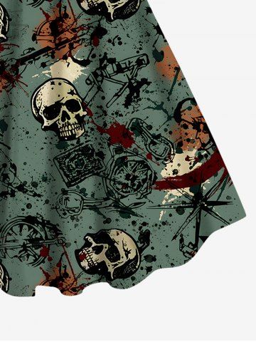 Plus Size Halloween Skulls Blood Paint Splatter Print Tank Dress - Green - 6x