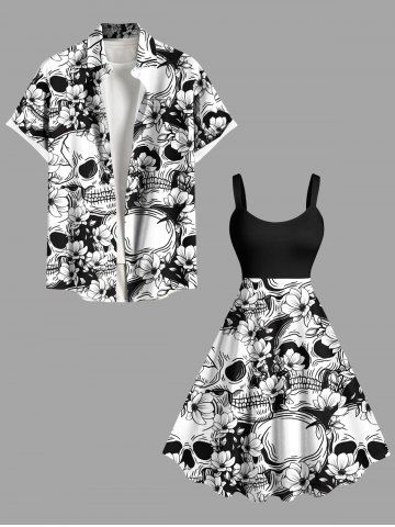 Graphic Dresses > Plus Size Halloween Skulls Flowers Print Tank Dress