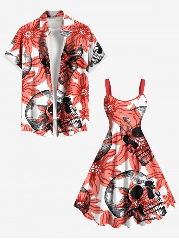 Plus Size Halloween Skulls Flowers Print Tank Dress - Red - 5x