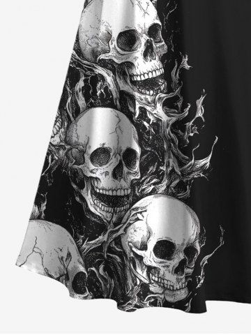 Plus Size Halloween Skulls Print Cold Shoulder Crisscross Maxi Dress - Black - 3x