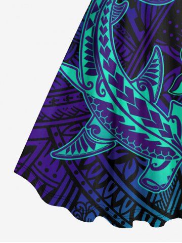 Plus Size Hammerhead Shark Floral Paisley Print Hawaii Tank Dress - Multi-a - 1x