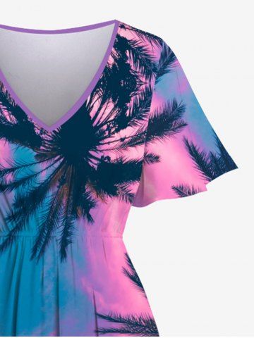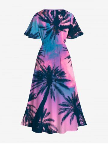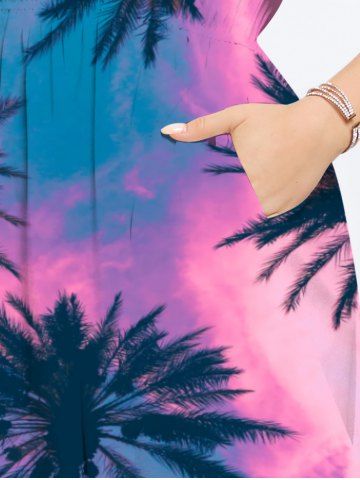 Plus Size Hawaii Sky Aurora Colorblock Coconut Tree Print Pocket Split Dress - Multi-a - M