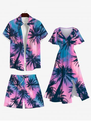 Graphic Dresses > Plus Size Hawaii Sky Aurora Colorblock Coconut Tree Print Pocket Split Dress