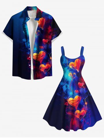 Plus Size Heart Balloon Ombre Print Valentines A Line Hawaii Tank Dress - Deep Blue - 6x