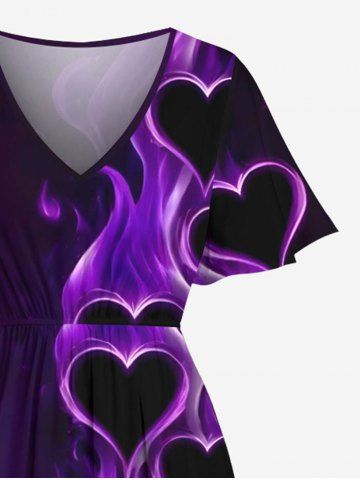 Plus Size Heart Fire Flame Print Hawaii Split Pocket A Line Midi Dress - Concord - 1x