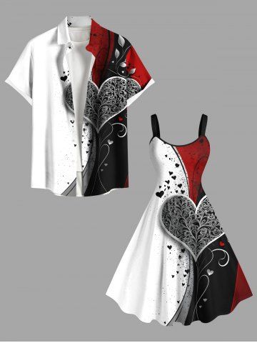 Plus Size Heart Ink Painting Splatter Curve Print Hawaii A Line Tank Dress - Multi - 2x
