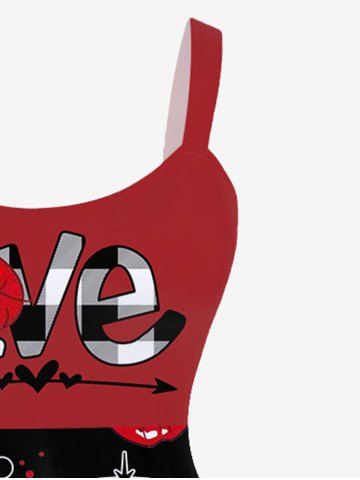 Plus Size Heart Lip Plaid Letters Diamond Print Valentines A Line Tank Dress - Black - 2x
