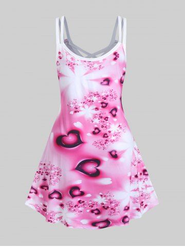 Graphic Dresses > Plus Size Hearts Flower Printed Crisscross A Line Sleeveless Dress