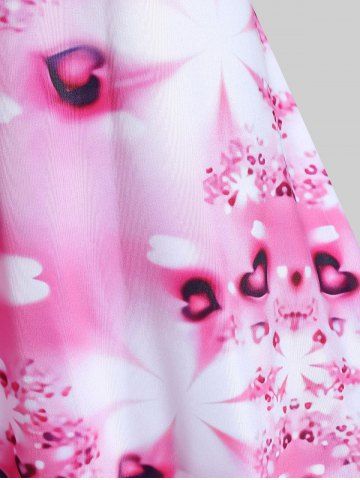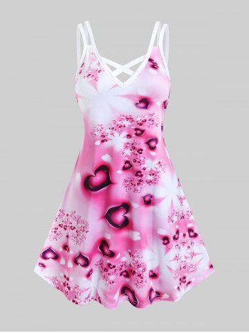 Plus Size Hearts Flower Printed Crisscross A Line Sleeveless Dress - Light Pink - L | Us 12