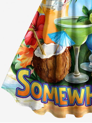Graphic Dresses > Plus Size Hibiscus Flower Coconut Tropical Leaf Juice Print Hawaii A Line Dress
