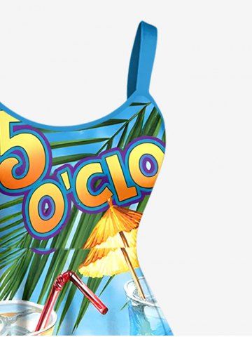 Plus Size Hibiscus Flower Coconut Tropical Leaf Juice Print Hawaii A Line Dress - Sky Blue - 4x