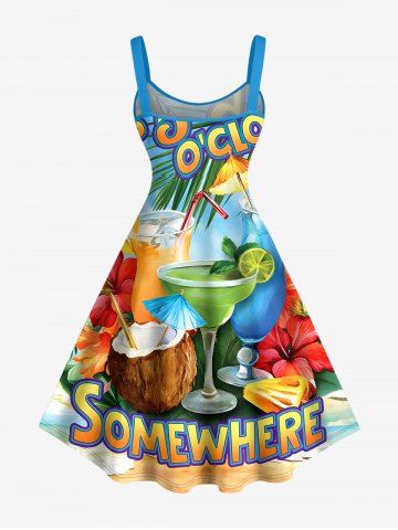 Graphic Dresses > Plus Size Hibiscus Flower Coconut Tropical Leaf Juice Print Hawaii A Line Dress