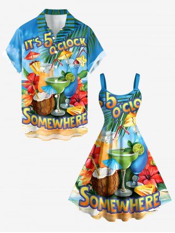Graphic Dresses > Plus Size Hibiscus Flower Coconut Tropical Leaf Juice Print Hawaii A Line Dress