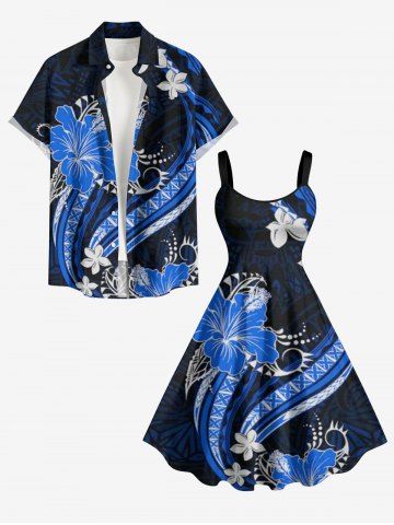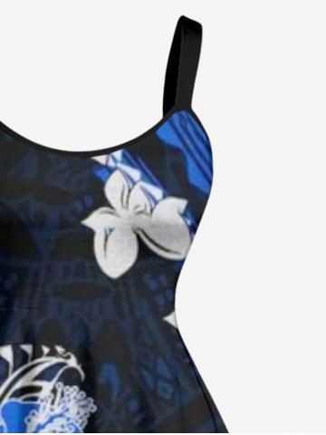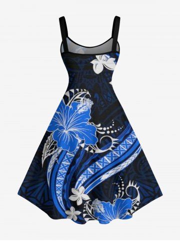 Plus Size Hibiscus Flower Ethnic Graphic Curve Print Hawaii A Line Dress - Deep Blue - 4x