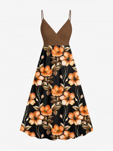 Graphic Dresses > Plus Size Hibiscus Flower Leaf Branch Print Hawaii Surplice A Line Cami Dress