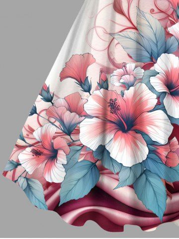 Plus Size Hibiscus Flower Leaf Ombre Colorblock Print Hawaii Tank Dress - Light Pink - S