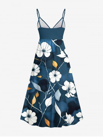 Graphic Dresses > Plus Size Hibiscus Flower Leaf Ombre Print Hawaii Surplice A Line Cami Dress