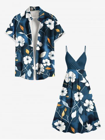 Plus Size Hibiscus Flower Leaf Ombre Print Hawaii Surplice A Line Cami Dress - Deep Green - Xs
