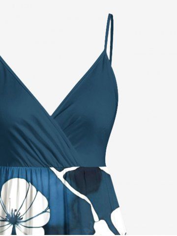 Plus Size Hibiscus Flower Leaf Ombre Print Hawaii Surplice A Line Cami Dress - Deep Green - M