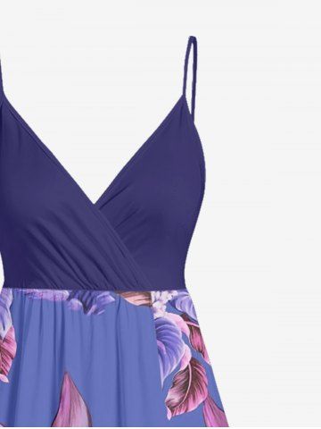 Plus Size Hibiscus Flower Leaf Print Hawaii Surplice A Line Cami Dress - Concord - 2x
