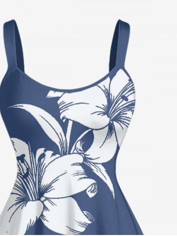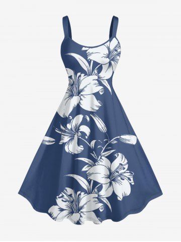 Plus Size Hibiscus Flower Leaf Print Hawaii Tank Dress - Blue - Xs