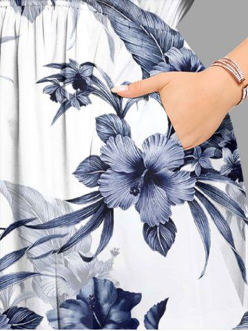 Graphic Dresses > Plus Size Hibiscus Flower Leaf Print Split Hawaii Midi Dress