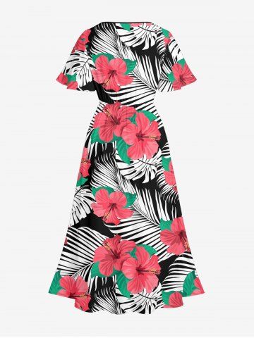 Graphic Dresses > Plus Size Hibiscus Flower Leaf Print Split Hawaii Midi Dress