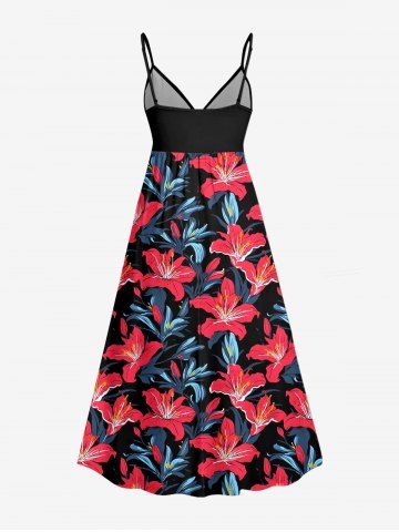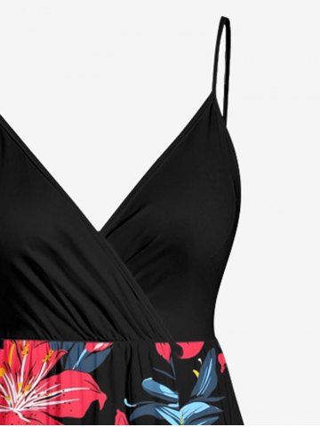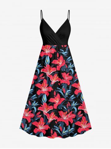 Graphic Dresses > Plus Size Hibiscus Flower Leaf Print Surplice Hawaii Cami Dress