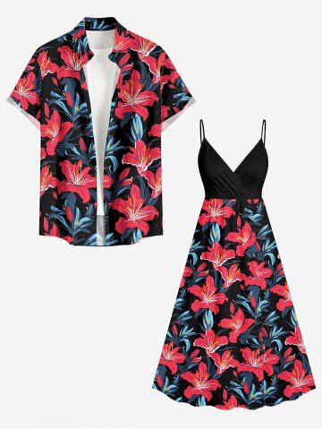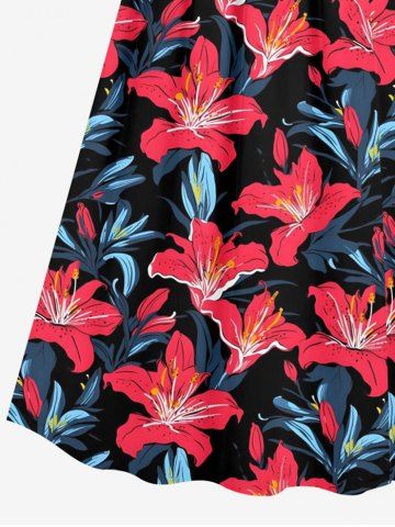 Plus Size Hibiscus Flower Leaf Print Surplice Hawaii Cami Dress - Red - Xxs