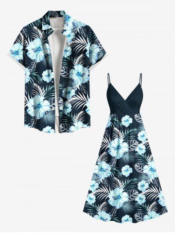 Graphic Dresses > Plus Size Hibiscus Flower Leaf Tropical Print Surplice Hawaii Cami Dress