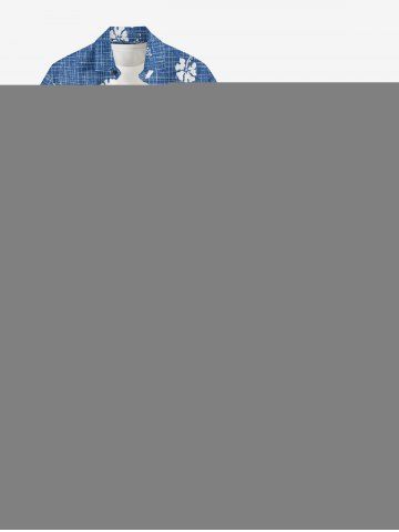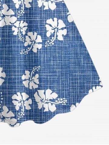 Plus Size Hibiscus Flower Plaid Print Hawaii Tank Dress - Denim Blue - Xxs
