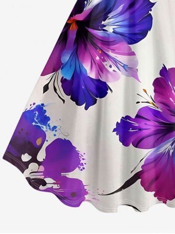 Plus Size Hibiscus Flower Print Hawaii A Line Dress - Purple - 5x