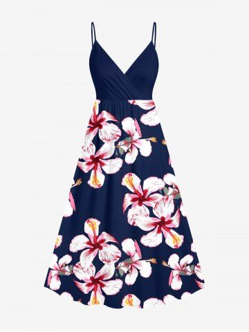 Graphic Dresses > Plus Size Hibiscus Flower Print Hawaii Surplice A Line Cami Dress