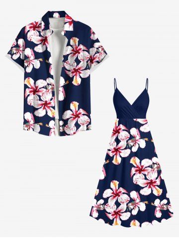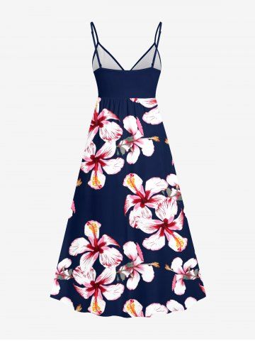 Graphic Dresses > Plus Size Hibiscus Flower Print Hawaii Surplice A Line Cami Dress