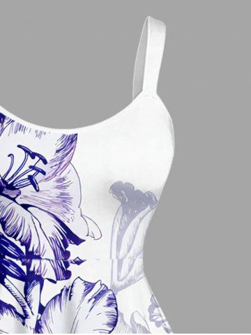 Plus Size Hibiscus Flower Print Hawaii Tank Dress - White - Xxs