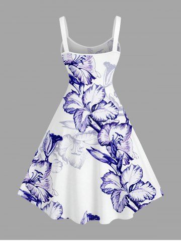 Plus Size Hibiscus Flower Print Hawaii Tank Dress - White - 1x