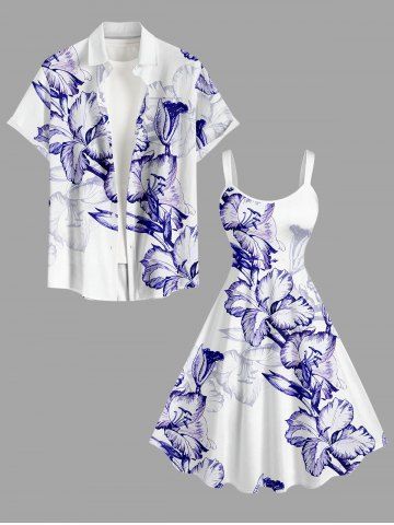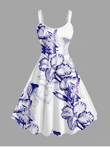 Plus Size Hibiscus Flower Print Hawaii Tank Dress - White - 3x