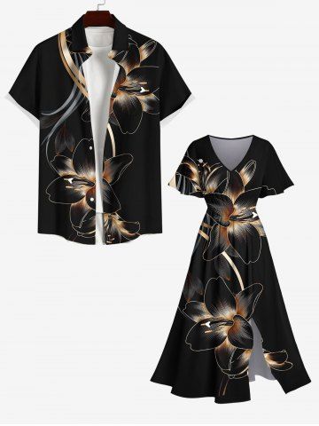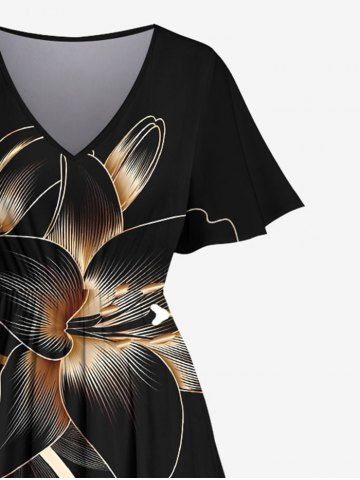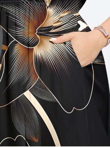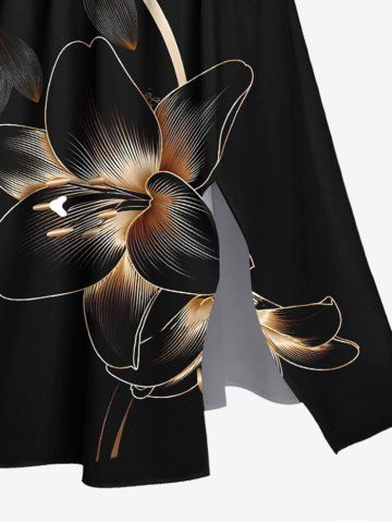 Plus Size Hibiscus Flower Print Split Hawaii Midi Dress - Black - 6x