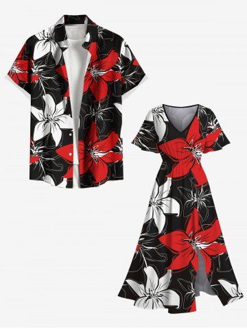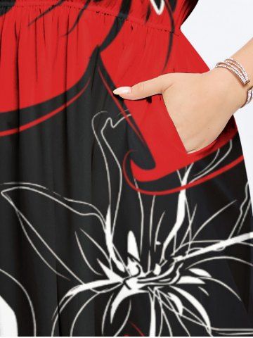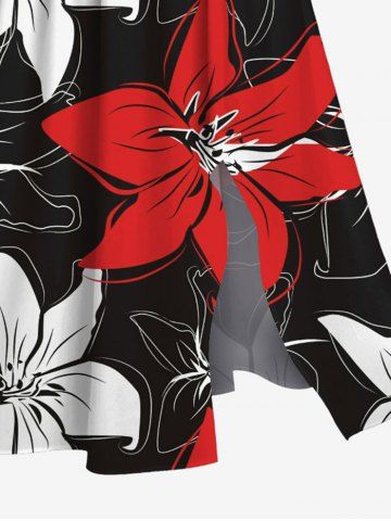 Plus Size Hibiscus Flower Print Split Hawaii Midi Dress - Black - 3x