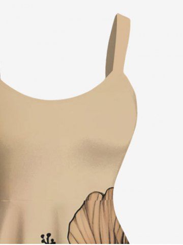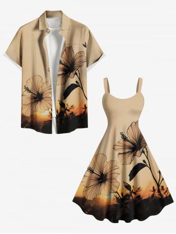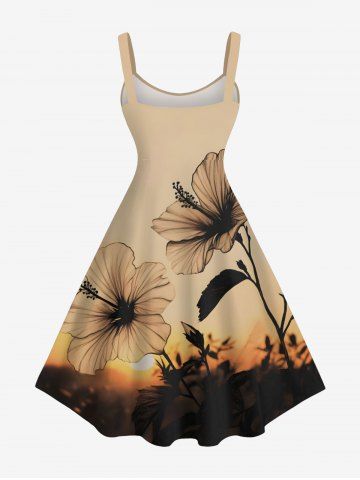 Plus Size Hibiscus Flower Sunset Print Hawaii A Line Tank Dress - Light Coffee - M