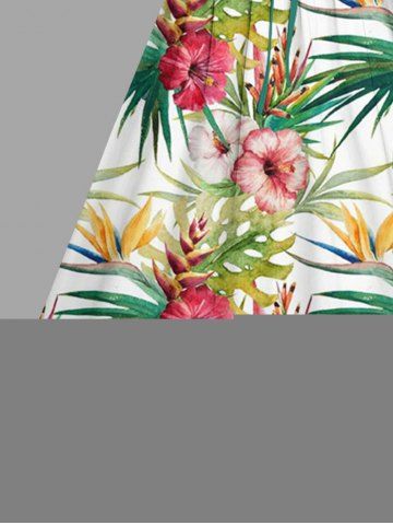 Plus Size Hibiscus Flower Tropical Leaf Print Cinched Hawaii Dress - Green - Xxs